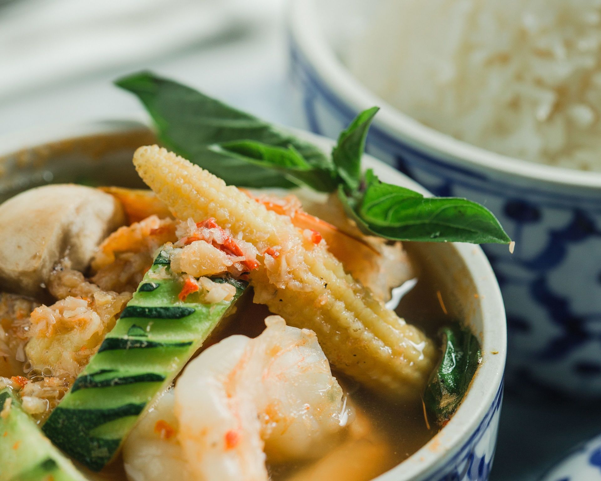 Flavors of Thai Chili, Black Pepper, Turmeric, Lemongrass & Shrimp Paste. Served with Minced Pork or Chicken.