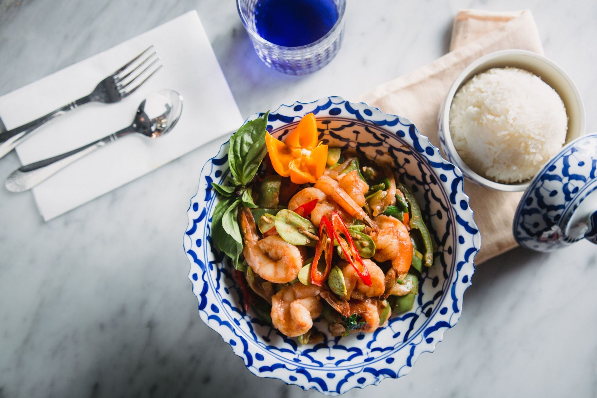 Served with Shrimp, Thai Eggplant, Cashew, Bamboo Shoots & String Bean.